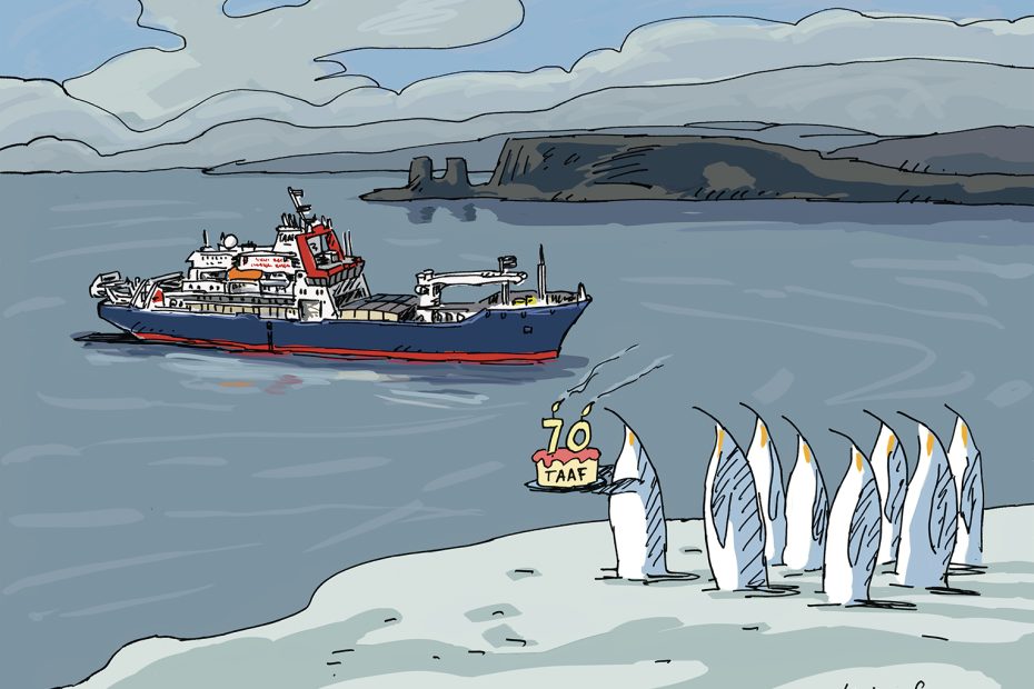 Le dessinateur a embarqué à bord du « Marion-Dufresne » pour une rotation d’un mois dans les îles australes, depuis La Réunion. Un mois de mise en pause de ses manchots de papier pour aller rencontrer les vrais. Son journal de bord sur le « Marduf » est à suivre sur « Le Point ».